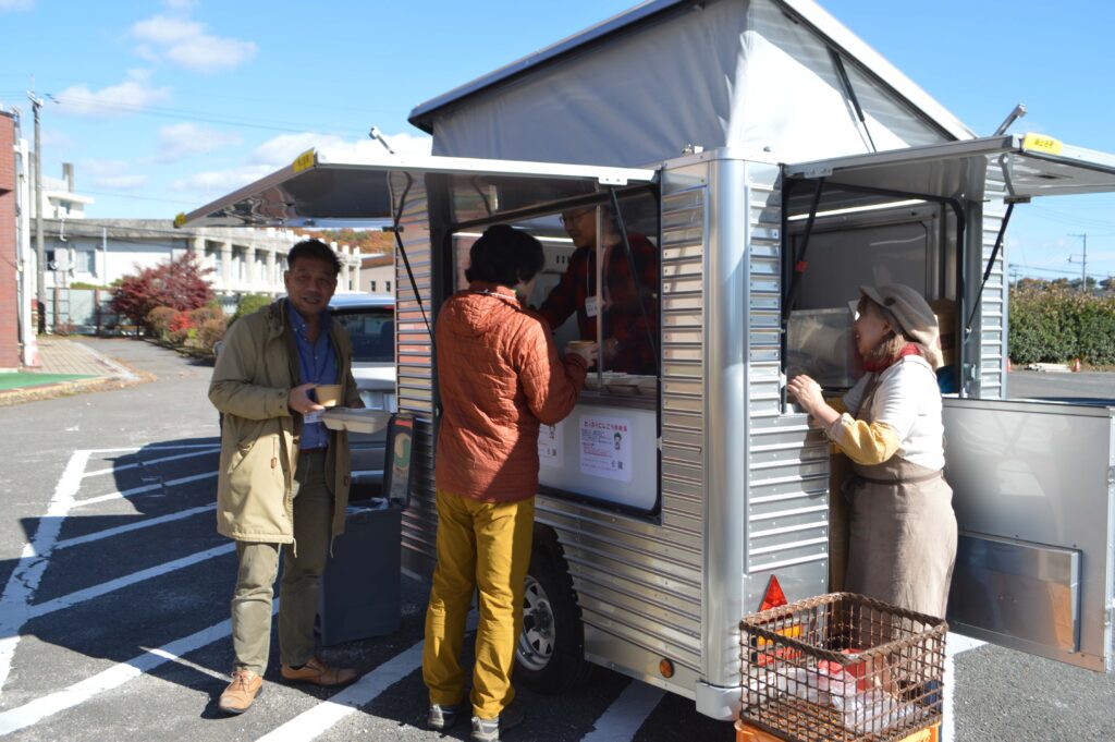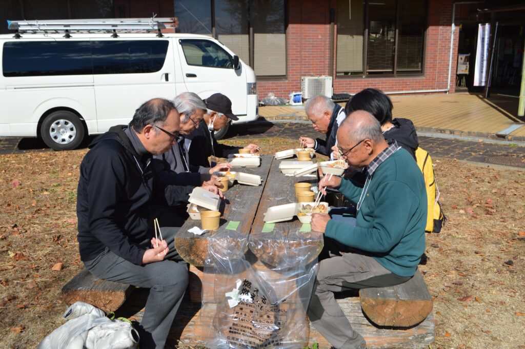 昼食はキッチンキツツキのキッチンカーで配布、温かいお汁付で美味しくいただきました。